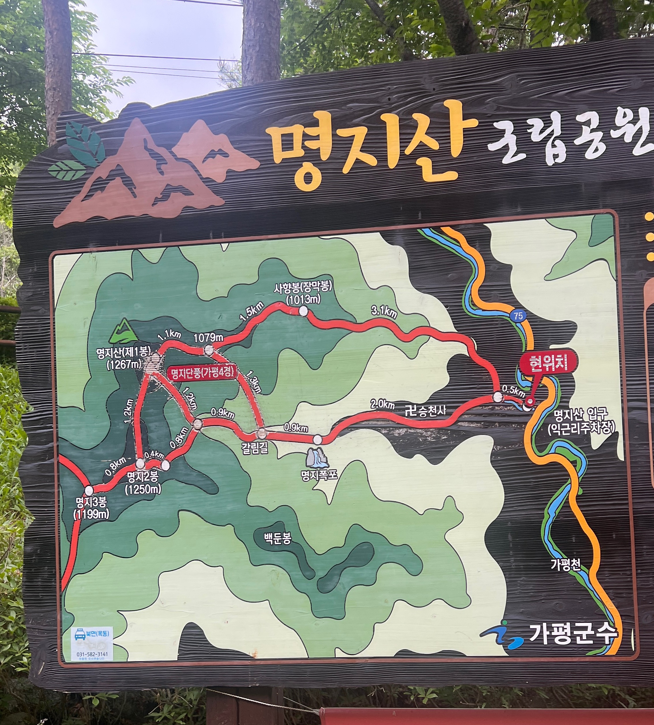 익근리 주차장-승천사-명지1봉-명지2봉-명지폭포-익근리 주차장 원점회귀(약 12.4km)